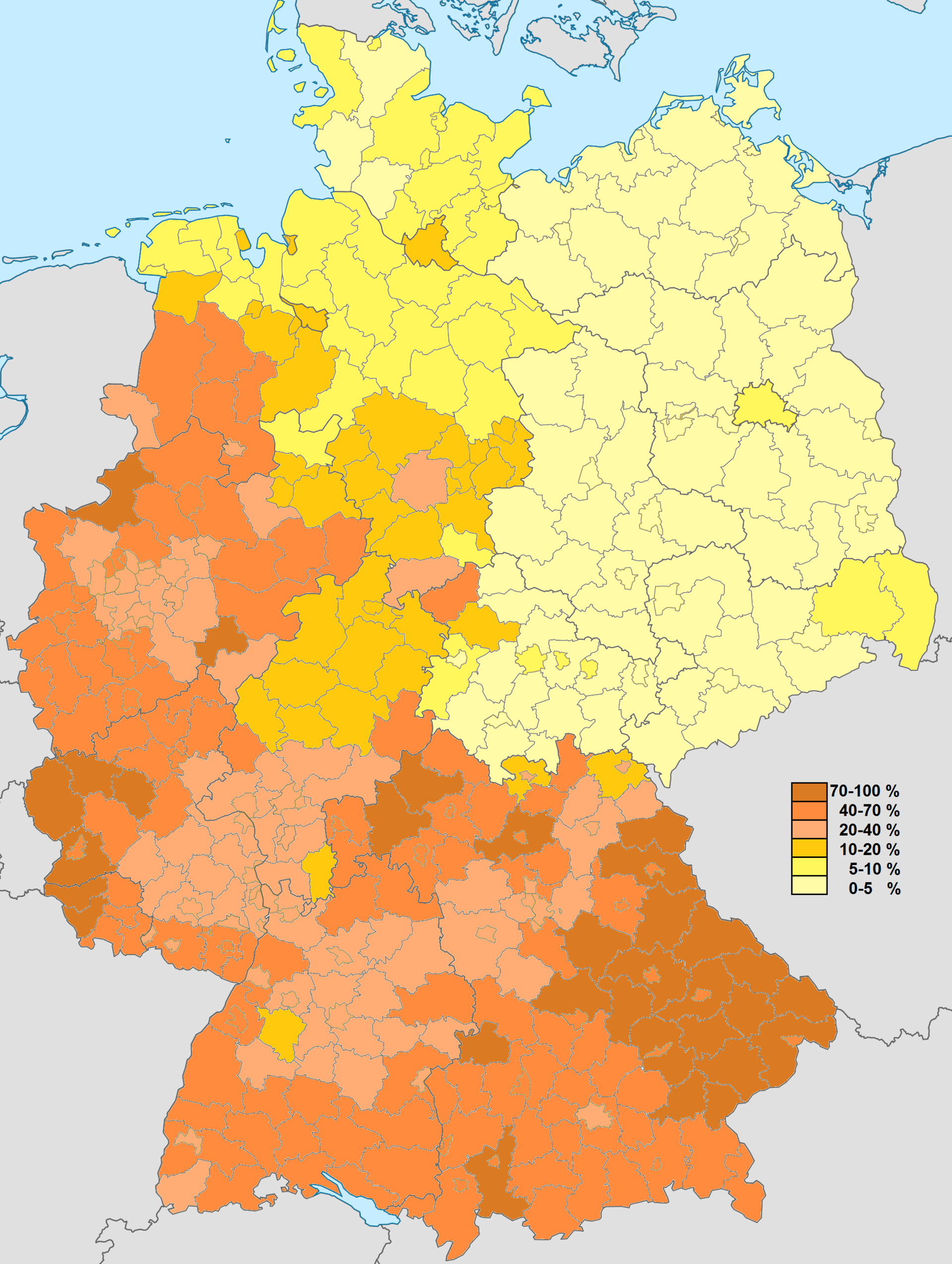 Y es que con el tiempo la división artificial Este-Oeste empieza a verse disuelta y se señala fuerte hacia lo que mencionábamos al principio de este apartado: la brecha tradicional Norte-Sur, favorable hacia el Sur. Es la auténtica e histórica brecha de Alemania, junto a la que se da en la margen del Rin. De hecho, tal partición tiene sus orígenes en la zona de la actual Alemania que quedó dentro del limes romano, o que irradió directamente su influencia, y la que no, que es exactamente la misma: el Rin y el Sur del país, grosso modo.