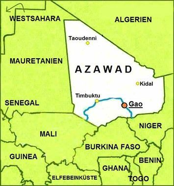 A principios de abril de 2012, aprovechando la confusión que rodea el golpe de estado, el MNLA declaró la independencia de la patria Tuareg en el norte de Malí. El 2 de abril, el grupo islamista Ansar Dine, impuso la Sharia[34] como única ley oficial en Tombuctú, Gao y Kidal, las tres principales ciudades en el norte de Malí.
