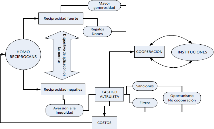 Por tal razón, el Homo reciprocans es necesariamente un constructor de instituciones, y se encarga de trabajar en mejorarlas.